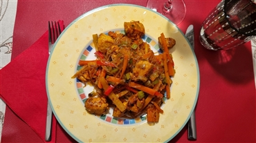 Hühner-Wok mit Glasnudeln